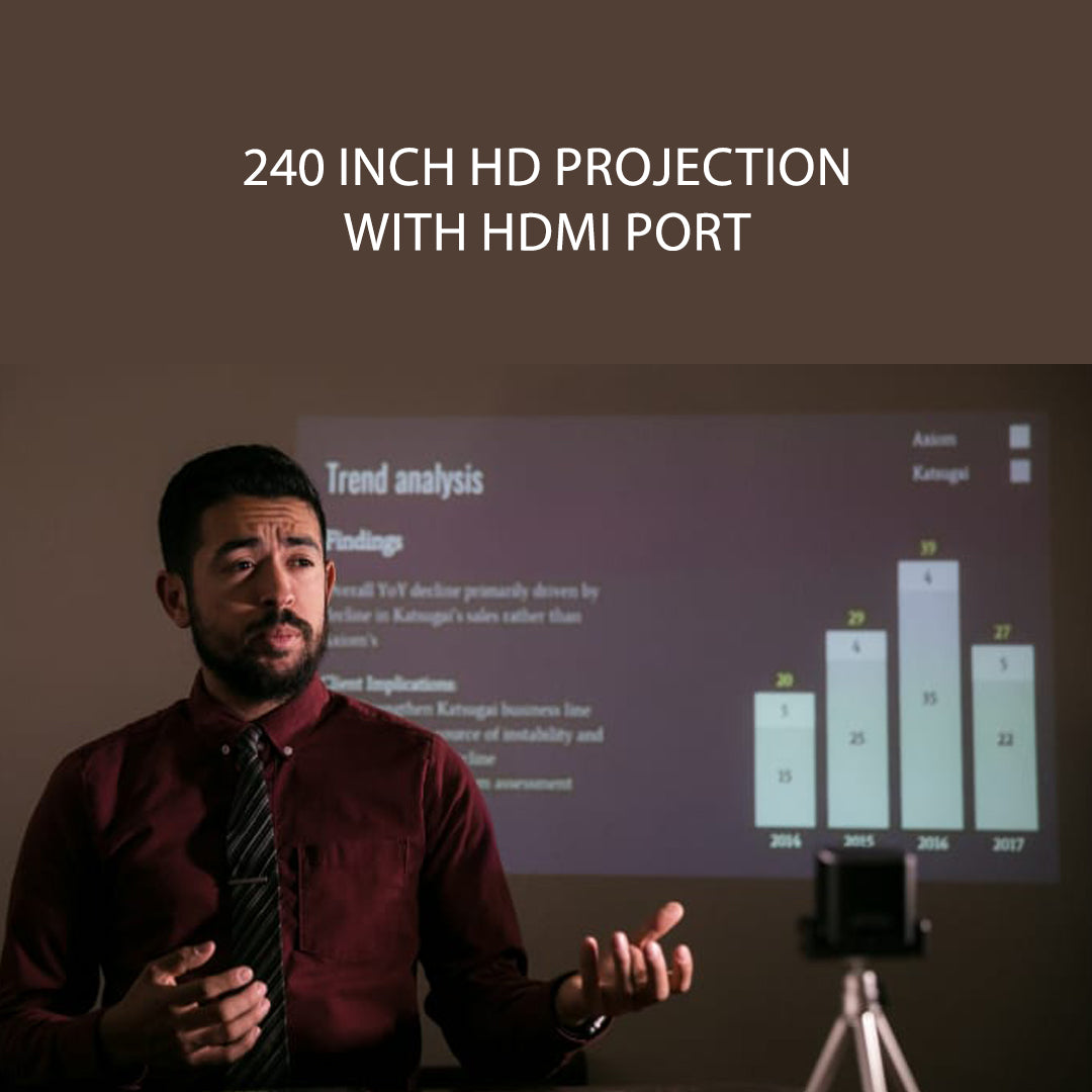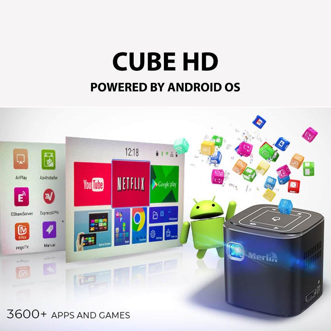 CUBE HD is a portable pocket projector that gives you larger-than-life entertainment wherever you go. With HDMI & USB ports and support for AirPlay & Miracast, simply connect your phone, laptop, or tablet and enjoy 2 hours of non-stop high-quality content on a large 120-inch projection area.