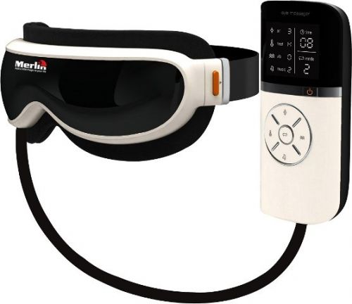 Merlin's Eye Massager Premium is a fusion of cutting-edge Western science and ancient Eastern therapies. It generates vibrations of multiple frequencies via a hi-tech IC chip, which dredges important acupuncture points in the eye and brain, stimulates the capillary vessel, and activates the cells around the eye and brain. The resulting increment in blood circulation increases oxygen supply to the eye and brain and may assist in relaxing the nerves and muscles around the eyes and the forehead. The combination of heat and massage rejuvenates the eyes, making vision clearer and sleep deeper.