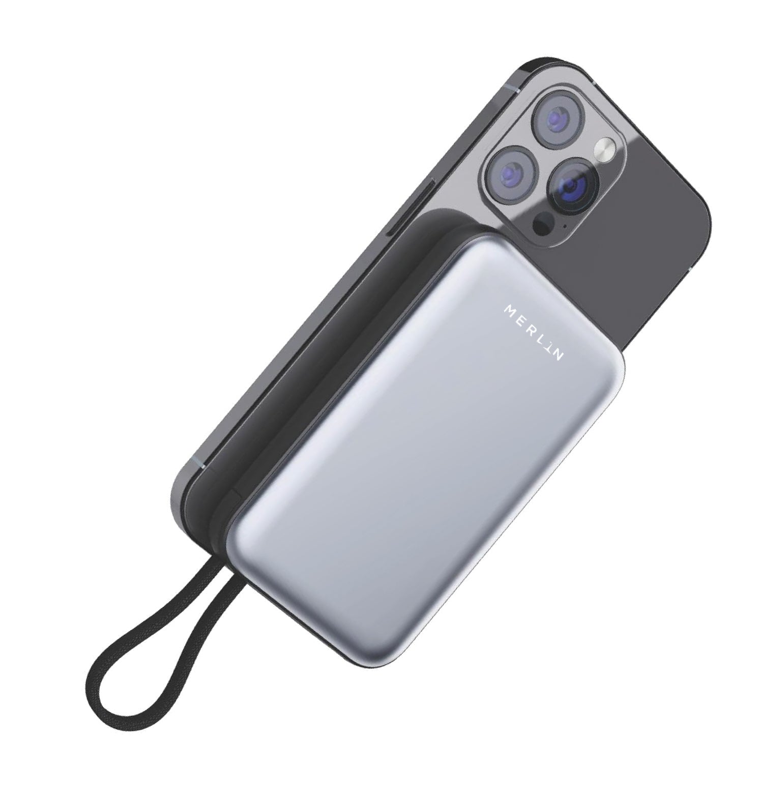 Keep your smart devices charged and ready with the Merlin 5000mAh PD MagSafe Portable Powerbank. This versatile and compact power bank is designed to meet all your charging needs with built-in charging cables and a convenient kickstand, making it a perfect travel companion.